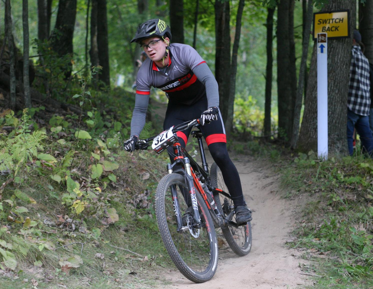 The trail at Nordic Mountain has quickly gained a reputation as the most technically imposing course on the Wisconsin race circuit, and the Hounds were ready to give it their best shot. For the Shorewood MTB team, the level of technical challenge in a course frequently translates directly to the amount of fun we have riding it. Tight corners, rocks and roots pepper the singletrack as it traverses the ski hill and surrounding forest.
